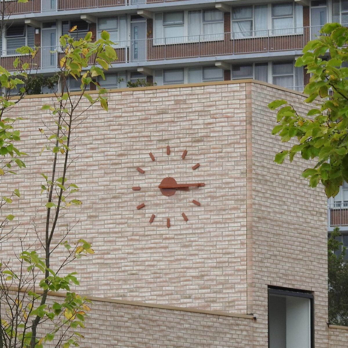 Bij IKC Katwijk loopt alles weer netjes op tijd. De klok van 150 cm op de gevel is niet te missen en wijst hen letterlijk kloksgewijs door de dag.Een herkenbaar punt aan het gebouw, waar leren, spelen en tijd beleven samenkomen.